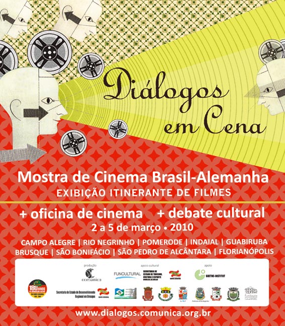 Diálogos em Cena é um projeto de formação de plateia e democratização dos bens culturais que tem o apoio do Funcultural, da Secretaria Estadual de Cultura, Turismo e Esporte. Nesta primeira edição, Diálogos em Cena promove o intercâmbio entre o cinema produzido no Brasil e na Alemanha. A finalidade é aprofundar as relações brasileiras com um país que teve forte influência na colonização do Brasil, especialmente no Sul. O evento faz parte do calendário das comemorações dos 180 anos da imigração alemã em Santa Catarina.